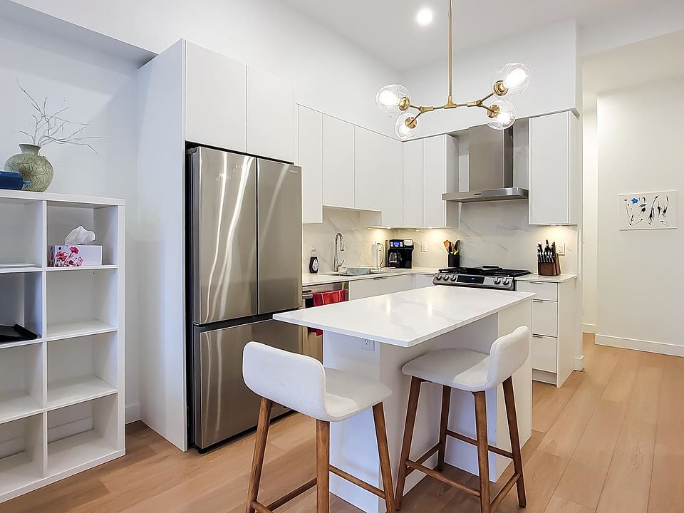 Not your average 1 bedroom + den! Top floor, panoramic views, over-height vaulted ceilings, large den, and air conditioning in both the living room and king-sized bedroom! Gourmet kitchen with gas stove, island and plenty of storage. Central to everything PoCo has to offer. Enjoy the river trails, sports facilities, shopping restaurants and public transportation all within 5 minutes walk. Near new home on warranty. 1 secure parking spot and 1 storage locker included. Best value in Port Coquitlam!