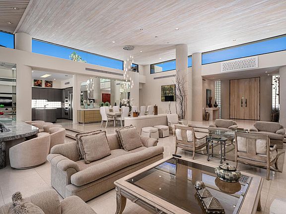 Lagoon style poolGrand proportionsUninterrupted viewsSeparate spaDramatic wet barFire feature areaSeveral patio areas