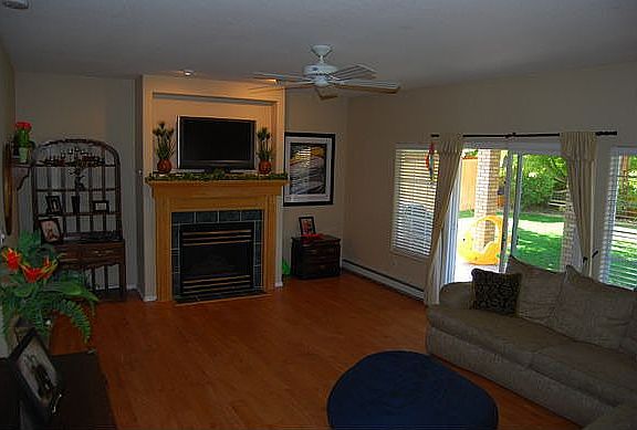 Not your average two-story plan. Very open & bright with vaulted ceilings, kitchen open to family room, formal & informal dining & 1 main level bedroom. 4 ft staircase & 3 bedrooms up. Large master suite with 5 piece bath, spa tub, walk-in closet & 8x22 deck surrounded by green. Central refrigerated air conditioning, newly painted interior and brand new carpet throughout. Shows beautifully! 22x10 patio off family room. Corner lot + RV parking behind fence. No RV's can show above 6 ft fence.