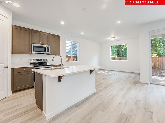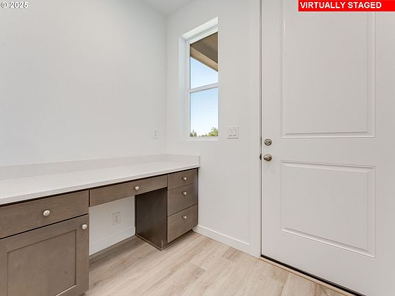 Welcome to the Valencia, a beautifully designed two-story cottage home in the cottage home community – Seasons at Maple Grove, located in Battle Ground. Spanning 1,360 sq/ft this efficient 3-bedroom, 2-bath residence features an open floor plan that embodies modern living. The main floor boasts a great room, dining nook, and a stylish kitchen equipped with a center island, quartz countertops, stainless steel appliances, and a walk-in pantry. An office nook near the entry provides a perfect space for remote work or study, while additional understairs storage and a large slider door flood the home with natural light, leading to a covered patio and private fenced backyard. Upstairs, you'll find a convenient laundry room, a versatile loft space ideal for play or relaxation, and three well-appointed bedrooms, including the primary suite with a private bath and walk-in closet. With high 9-foot ceilings and expansive 8-foot doors on the main floor, this home creates an airy atmosphere that maximizes space and functionality, proving that great things can come in smaller packages. This home’s curated Stone Creek color palette features warm, sandy tones and rich finishes, creating a neutral backdrop that’s ready for your finishing touches. The cottage homes at Seasons at Maple Grove strike an ideal balance of style, comfort, and practicality, making it the perfect choice for those seeking a light-filled sanctuary, an entertaining space, or a low-maintenance yard. Located just minutes from downtown Battle Ground, this home offers the perfect blend of convenience, style, and a peaceful suburban lifestyle. Property taxes to be determined. Don’t miss your chance to be part of this exciting new community! Model home is located at 2001 SW 5th Place, Battle Ground, WA, 98604. Walk-ins are welcome Wed.-Sun. 10-6pm, Friday's 12-6pm, Mon.-Tues. by appointment. Ask us about special financing options.