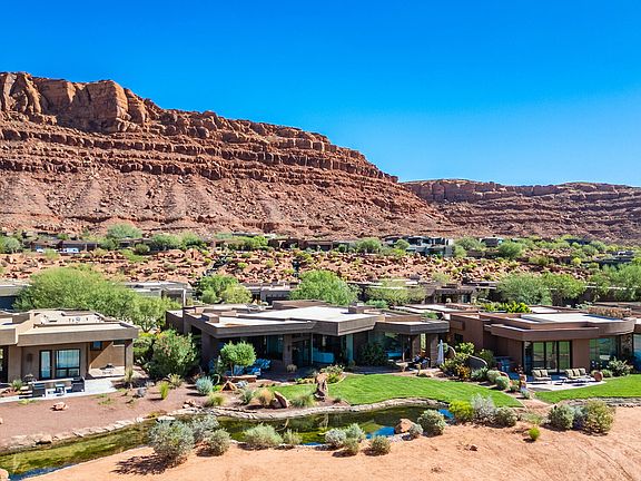 Nestled amongst the serene beauty of the prestigious Entrada Golf Course, this luxurious estate offers an unparalleled living experience with breathtaking views of the iconic Arizona Strip, Utah Hill, Red Mountain and the mesmerizing sunsets. Designed with a spacious, open layout, the home seamlessly blends indoor and outdoor living, featuring endless walls of windows that invite the stunning scenery inside.