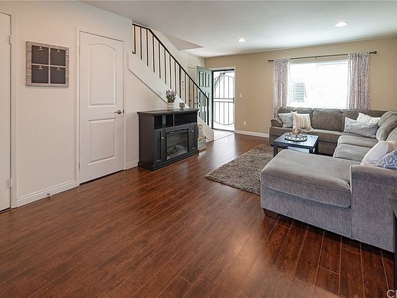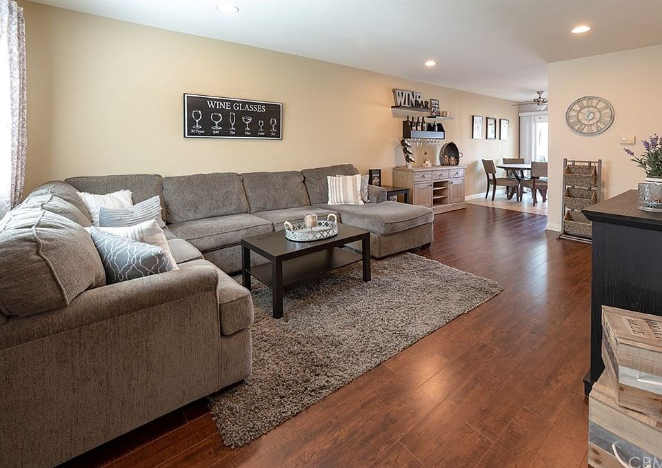 Simply Gorgeous. Show like a model home! This beautifully upgraded and tastefully decorated unit is conveniently located in the Green Meadows West Community. Large living room with newer blinds & wood laminate flooring. Spacious remodeled kitchen with granite counter top,Italian Porcelain tile, stainless steel appliances and large dining area with sliding glass door opens up to the extra large Patio great for entertaining. Upgraded guest bathroom downstairs. Large master bedroom with two separate mirrored wardrobe closets and sitting area. Full upgraded bathroom with spacious counter top. Inside laundry area. Upgraded light fixtures and recessed lighting. Ceiling fan. Newer double pane windows and sliding glass door. Tons of storage. One car attached garage with direct access. Convenient guest parking access through the Patio. Destined to win your heart.