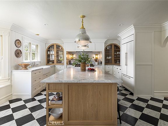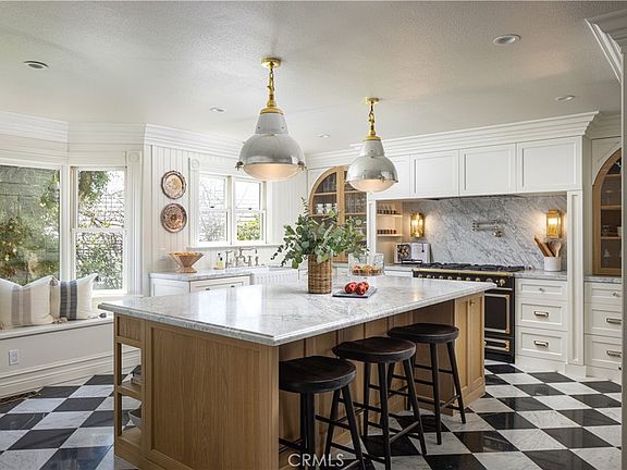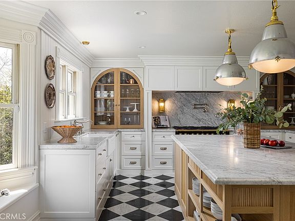 Tucked gracefully at the end of a quiet cul-de-sac and steps from the Coto de Caza horse stables, 23311 Via Dorado stands as a masterclass in timeless elegance and refined craftsmanship. This newly renovated Victorian estate effortlessly marries old-world charm with today’s most luxurious finishes, offering an experience that speaks directly to those with a taste for bespoke living in a prestigious, guard-gated equestrian community. The home’s striking façade—adorned in fresh Benjamin Moore hues and crowned with ornate gables—makes a storybook impression. The wraparound porch welcomes you with warmth, while custom exterior designer lighting casts a golden glow over the manicured gardens. Inside, you're greeted by a level of detail that only a true design aficionado will fully appreciate: wide-plank wood and marble floors and Visual Comfort lighting that elevates each room with understated sophistication. Step into the kitchen and prepare to be swept away. A showcase of culinary artistry, it boasts custom soft-close cabinetry, a white oak island with display shelving, and honed marble countertops. At the heart of it all is a striking La Cornue French range, perfectly flanked by a Subzero fridge-freezer, Miele dishwasher, Sharp microwave drawer, and a KitchenAid warming drawer—all seamlessly integrated. The fluted apron sink, Newport Brass fixtures, and a dedicated hot water dispenser round out the ensemble in exquisite style. The remodeled bathrooms echo the home’s refined aesthetic, with luxurious materials and thoughtful design choices at every turn—including a clawfoot soaking tub nestled beneath picture windows and a stunning walk-in shower clad in emerald-toned tile. The primary suite offers a serene retreat with its own fireplace, lounge area, and treetop views. The backyard is an entertainer’s dream, newly completed with a custom BBQ island, fire pit, fresh landscaping, and lush green lawn—a perfect place to host under the stars or unwind after a ride through the nearby trails. In a community celebrated for its natural beauty, elite amenities, and equestrian lifestyle, this home is a rare offering. It’s not just a property—it’s a narrative waiting to unfold for a discerning buyer who values sophistication, privacy, and timeless elegance.
