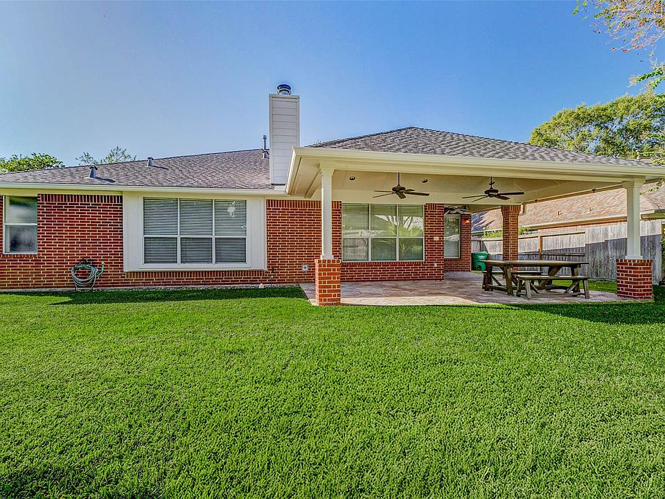 Welcome to this prestine one-story home in the highly sought-after neighborhood of Cinco Ranch. Meticulously maintained and move-in ready, the home offers four bedrooms and two full baths with beautiful wood flooring throught the main living areas. The updated kitchen features granite countertops, updated fixures, a stylish backsplash, large island, stainless steel appliances, gas stovetop and oven. The open concept living room offers soaring ceilings and a cozy gas fireplace, perfect for entertaining. Relax and entertain outdoors on the enormous covered patio with ceiling fans. Roof is 2 years old. Conveniently located just minutes from I10, 99, LaCenterra, and within walking distance to highly acclaimed Fielder Elementary. Zoned to award-winning Katy ISD schools. This home combines comfort, convenience, and quality, making it a must-see.