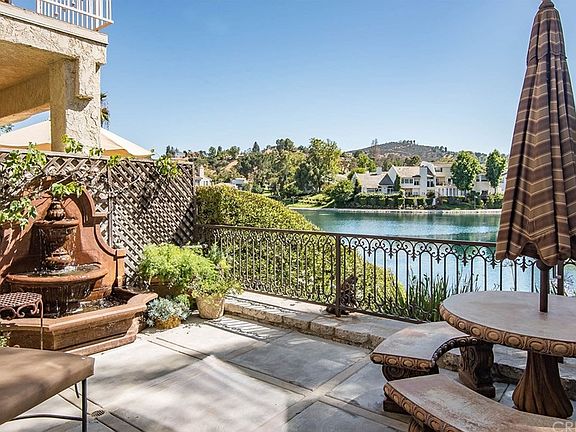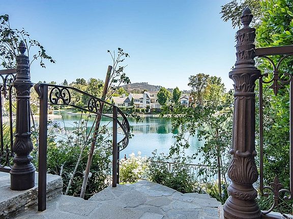 Welcome to Calabasas Lake! With a Prime Waterfront View of the Lake, this home features a stamped concrete driveway and side patio that leads to a Custom Garage Door and Iron Gate Entry. These professionally landscaped grounds include a Pergola, Fountain, and Retractable Patio Awning. Inside of the home is completely renovated displaying Custom Mesquite Double Entry Doors, Hand-Scraped Hardwood Floors, Updated Kitchen with Custom Woodwork and Appliances, Stone Fireplace, Pella Doors and Windows, and a Large Master Suite with Retreat, Fireplace and View Balcony. The Master bath offers a large Walk-In Shower and Spa Tub. The Secondary bedroom and Loft include patio access and the opportunity to enclose the loft for a 3rd bedroom. You will enjoy entertaining in the backyard that features a beautiful garden, ironwork fencing, and pathway leading to the lake.