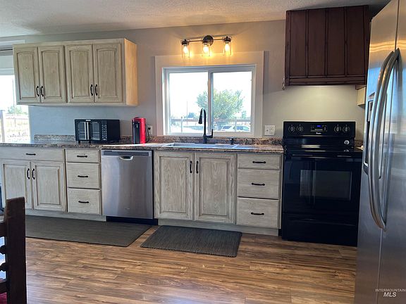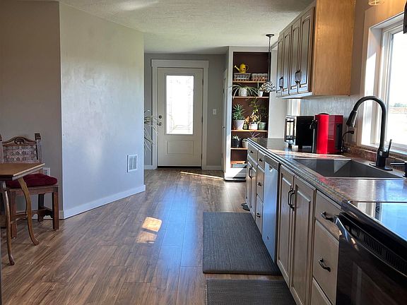 Enjoy your own piece of country! This beautifully updated home sits on five acres and is perfect for the slower paced living you dream of. Includes RV parking, brand new 30x36 pole barn with epoxied floors, shed, and plenty of room for animals. The fully fenced yard has a generous garden space as well as mature fruit trees including a nectarine tree, two cherry trees, and an apple tree. Corrals, tack shop, irrigation rights, and fully fenced. Recent updates include: new farmhouse sink, barn door to primary bathroom, electrical work, windows, wood stove, and more.