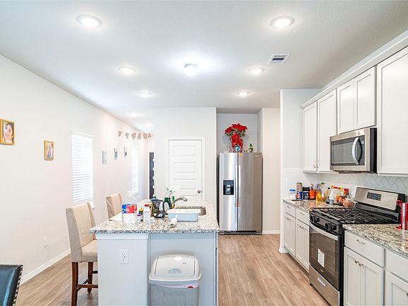 Discover contemporary living in this nearly new 2023 one-story home in the vibrant Aurora community of Katy. This beautifully designed 3-bed, 2-bath home offers an inviting open layout with abundant natural light and stylish finishes throughout. The kitchen features granite countertops, stainless appliances, a breakfast bar, and ample cabinet space, flowing seamlessly into the living and dining areas—ideal for hosting or everyday comfort. The primary suite boasts a spacious walk-in closet and spa-inspired ensuite. Outside, enjoy a large backyard perfect for gatherings, play, or future outdoor upgrades. Convenient access to Grand Parkway (99), I-10, shopping, entertainment, and top Katy amenities. A fantastic opportunity to own a move-in-ready home in a growing master-planned area!