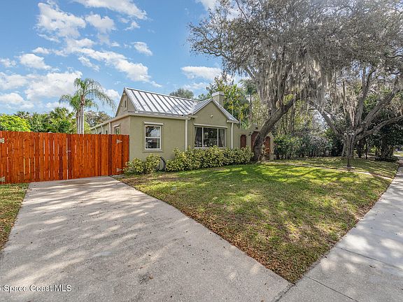 Don't miss this uniquely charming 2/1 in historic Carleton Terrace with a bonus room for an office or 3rd bedroom, plus a detached climate-controlled building with plumbing—easily converted into additional living space. This 1925 coastal cottage with Mediterranean-Spanish inspired exterior features key updates: Roof (2023), updated plumbing (no cast iron), electrical, and newer AC (2018/2020) with an inline air purifier. Sitting high and dry on a coquina bed, it's hurricane ready with impact windows, custom shutters, and a whole-home Generac generator powered by a 1,000-gallon underground propane tank. Historic craftsmanship shines through 3/4'' oak hardwood floors and a wood-burning fireplace. Enjoy outdoor living with a screened porch, fenced backyard, and a vintage brick fire pit. Exclusive access to a private community park on the river adds to the appeal. Just minutes from Cocoa Village and the Indian River, this home blends charm, modern updates, and a prime location.