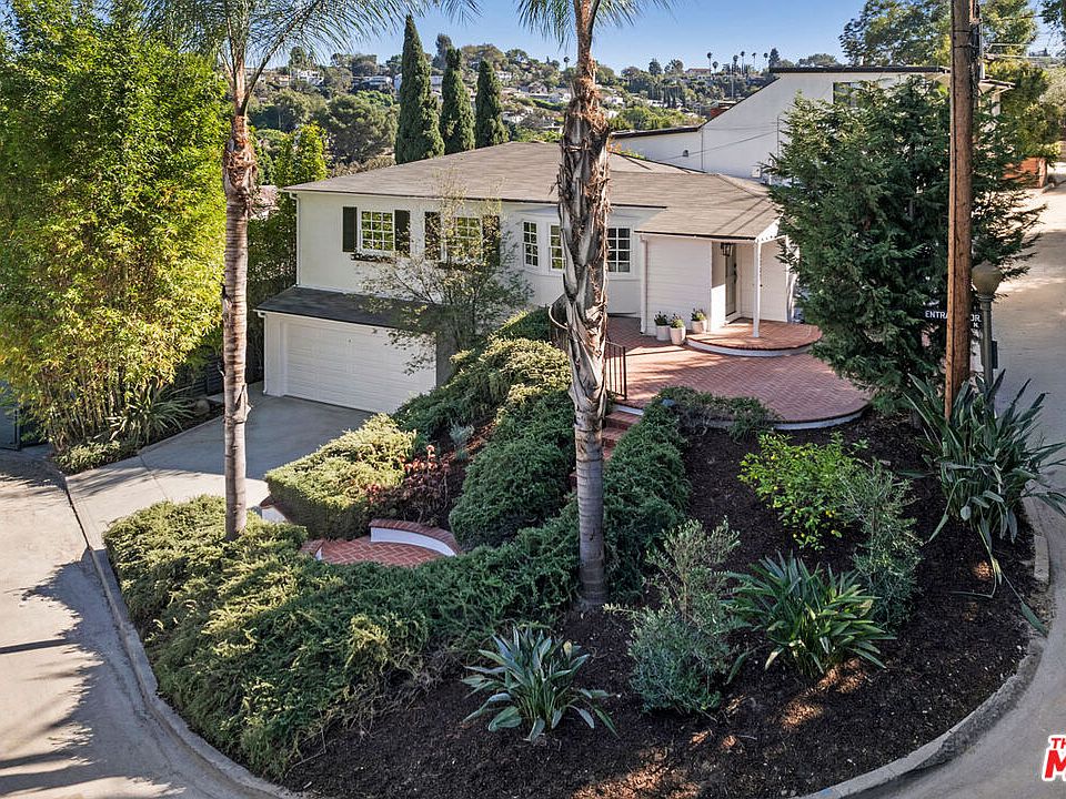 Abundant space, privacy, and charm define this airy retreat on a corner lot in the Franklin Hills of Los Feliz. Elevated and surrounded by greenery, this 1936 Traditional evokes a sense of refined ease with a breezy open floor plan, wood floors, and elegant built-ins. Sunlight fills the space; a cozy bay window settee is perfect for curling up with a book. The fully-renovated kitchen, with dine-in butcher block countertops, stainless appliances and terracotta tile, makes cooking and gathering a pleasure. Two spacious bedrooms offer hillside views; the vintage bath brings a touch of Art Deco flair. A versatile bonus space with ADU-plans approved by the city has its own entrance, kitchenette, and bath - perfect for guests or a home office. Indoor-outdoor flow feels organic; the spacious back yard is a serene space for open-air dining and relaxation amid fruit trees and tasteful landscaping. Central HVAC & garage add convenience, all while placing you just moments from dining, shops, and coffee in Los Feliz and Silver Lake Junction.