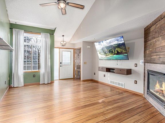 Welcome to this beautifully updated townhome offering private views and modern charm! The main level boasts an open layout filled with natural light, a cozy fireplace, and vaulted ceilings that create a spacious and inviting atmosphere. A separate dining room and a large kitchen make it perfect for entertaining. Upstairs, you’ll find two generously sized bedrooms, including a primary suite with a walk-in closet, a versatile loft space, a full bath, and a convenient laundry room. This home has been thoughtfully updated with all-new flooring, bamboo wood floors, fresh carpet, stylish lighting, a Nest thermostat, and brand-new appliances. Unique features include barn doors in the entryway and primary bedroom, adding a touch of rustic elegance. Enjoy peace of mind with a new roof and enjoy the great location near schools, the YMCA, walking paths, and parks. Don’t miss this move-in-ready gem!