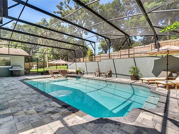Beautiful pool home located in the highly sought after neighborhood of Country Club Estates. Home features a BRAND NEW ROOF, New Hurricane rated double pane windows, an exquisite NEW SALT WATER POOL with brick pavers, sun self, baby gate and screen enclosure. In addition, all popcorn ceilings have been removed, the newer insulated garage door and garage door opener. Relax in A/C and over look the pool from the bright FLORIDA ROOM. Updated kitchen with new refrigerator, quartz counter tops and stainless steel appliances, soft close drawers and hook up for disposal. The owner's suite is very spacious with updated attached bath with dual sinks and large walk-in shower. The family room features a lovely wood burning fireplace. Home is on CITY WATER BUT WELL FOR IRRIGATION. Additional features include a crown modeling, a NEST thermostat, ADT SECURITY SYSTEM that the owners have setup with wireless remote and controllable from a mobile app (security system and features need to be setup through ADP).