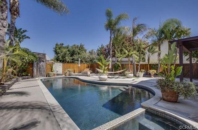 Gated private entrance leads to a tranquil home in a unique tropical feeling of resort style living. Sparkling pool, accented stones and brick outdoor living in quiet seclusion. The garden room has tons of glass with views of the private pool & outdoor entertaining areas. Hardwood floors and interior design touches. This is a hidden secret that you must see to believe.