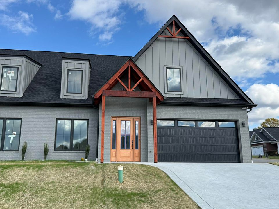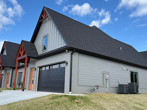 Enjoy the comfort of natural gas fueling the water heater, furnace, and cozy fireplace. With two HVAC units, you'll have efficient climate control throughout the home. The exterior showcases modern curb appeal with fiber board and batten siding, painted brick, wood accents on the front porch, black Andersen windows, and sleek black garage doors.