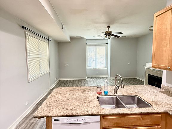 Welcome to this beautifully updated corner unit that perfectly blends comfort and modern living. Featuring an open-concept layout with soaring ceilings and expansive south- and east-facing windows, this bright and airy home is filled with natural light throughout the day. The modern kitchen is ideal for entertaining, complete with stainless steel appliances, granite countertops, and a breakfast bar. The primary suite features an elegant accent wall, two spacious closets, and a luxurious en-suite bath with dual vanities, a separate shower, and a whirlpool tub. The second bedroom comfortably fits a king-sized bed and includes stylish accent wall panels, offering flexible furniture configurations. Recent upgrades include: Fresh paint & LVP flooring (Oct 2025) New stainless steel appliances (Aug 2023) In-unit washer & dryer (2024) Water heater (2020) AC unit serviced with gas replacement (June 2025) Additional highlights include a secure side entrance, one exterior parking space, and a prime corner location in a well-maintained building. Ideally situated minutes from the University of Illinois at Chicago (UIC), Chicago Medical District, Addams/Medill Park, Little Italy, West Loop, United Center, and the Blue Line-this condo offers the best of city living in a convenient, connected neighborhood. **Broker Interest
