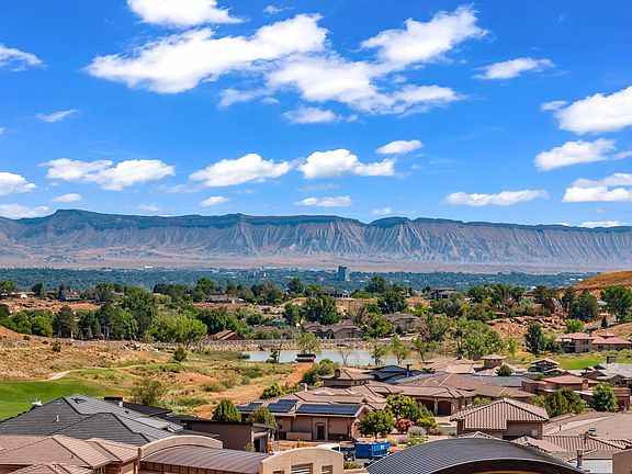 PRICED 100,000 below recent appraisal!!! This Stunning custom-built home sits proudly within the prestigious Redlands Mesa Golf Course featuring unmatched views of Grand Junction, Mt. Garfield, and the Grand Mesa. The views from every room in the home are sure to impress. Freshly resurfaced hardwood flooring and new carpet blend beautifully with the tile, stone, ironwork and wood throughout this home. Upon entering, you will discover an inviting and welcoming open-concept floor plan. A formal dining area flows into the living area, which sits under beautiful wooden beams and features a gas fireplace. The large wall of windows includes a vanishing door bringing the indoor and outdoor living spaces together seamlessly. The expansive deck includes a fireplace and plenty of covered area for year-round entertaining. The kitchen is a chef's dream! There is complete custom cabinetry throughout and a huge granite-covered island with seating for 4. A breakfast nook provides a more intimate setting. The bar area includes two cooler drawers, a hammered copper sink and plenty of storage. Upon entering the primary retreat, you will discover a seating area with stunning views and a copper fireplace with a sandstone hearth. Two large separate walk-in closets with built in drawers, large separate vanities, a soaking tub, and a slate steam shower with multiple heads complete the primary suite. The private office with built-in. The second bedroom on the main level is on the opposite side of the home ensuring privacy and includes a full ensuite bathroom and opera balcony with great views. A thoughtfully designed mudroom attaches the oversized 4 car (1700 sq ft) garage, large laundry room and butler’s pantry to the main level of the home. Enter the lower level from the wide staircase, and you are greeted with an expansive great room with 12-foot ceilings and windows galore. This area includes a beautiful stone fireplace, built in trophy cases and plenty of space for billiards and game table. A mini kitchen features storage, countertops and island with seating for 4. There are two more full ensuite bedrooms downstairs each conveniently located on opposite sides of the home. Additional rooms include a large, tiered theatre, flex room, 2nd laundry room, and added storage. The pride of ownership is apparent throughout as the seller has been attentive about maintenance, updates, upgrades, and owned Solar keeping those energy costs down!