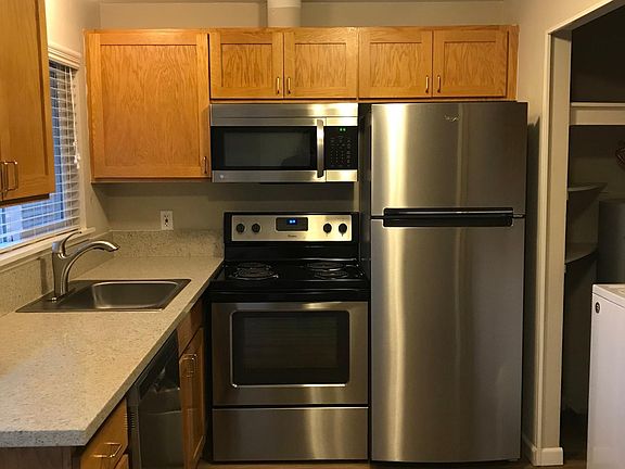 Recently Renovated Single Level End unit Hardwood laminate flooring throughout Stainless steel appliances Quartz Countertops Full size washer Dryer Large fenced Yard Central Wood Village Location Close to McMenamins Edgefield, easy access to Troutdale, Gresham and Portland Pet negotiable Resident pays utilites