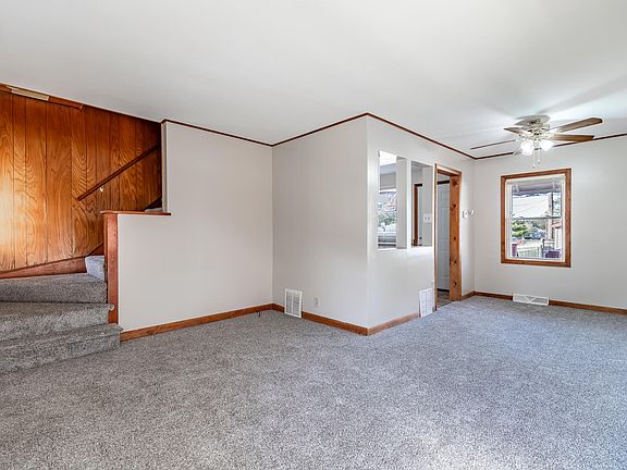 Great location on this ALL BRICK remodeled 2 bedroom, 1 bath, half duplex. ALL new carpet in living room, stairs and bedrooms, new flooring and cabinets in kitchen and bath, new counters, and new paint! Enter into the living area full of natural light. The kitchen boasts new white cabinets, neutral counters, new flooring, 2 doors, one to basement and one to back deck, which leads to the fenced yard and 1 1/2 car garage with garage door opener and alley access. Basement is clean, DRY, has been freshly painted and has laundry hookups and a sink. Upstairs you will find 2 spacious bedrooms, and a full bath with new cabinet, sink and flooring. Tub has tile surround. Newer windows, roof replaced in 2010, Furnace and A/C new in 2018. Don't delay on this fabulous home!