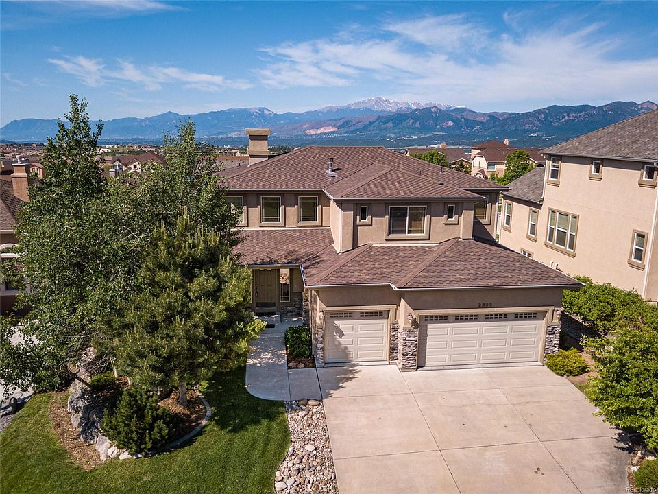 Fantastic 6 BR home in Flying Horse with luxurious touches plus extensive mountain views. MBR suite boasts a 5-piece bath & romantic gas fireplace, while the gourmet Kitchen includes all stainless appliances, double oven, granite counter tops & breakfast nook that walks-out to an expansive deck overlooking an outdoor fire pit, pond, and gorgeous Colorado skies. Finished walk-out basement includes a fabulous recreation room with massive wet bar, fireplace, built-ins, PLUS a home theater room with seating! Equipped with Central A/C, a 3-car garage, fully landscaped yard AND located in school district 20 - what are you waiting for?! Call us today!