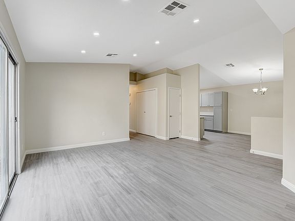 House has fresh paint and was renovated two years ago with grey cabinets in the Kitchen and bathrooms and PVC light gray Flooring throughout the house. It comes with a stove, microwave, dish washer, washer and dryer. Desert landscaping in the front yard and gravel in backyard for low maintenance.
