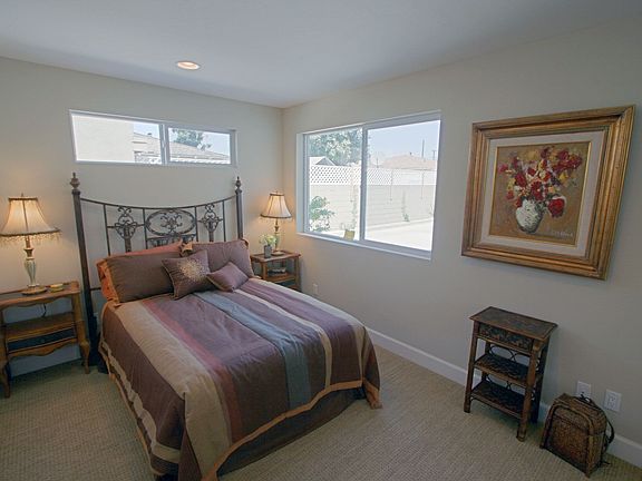Built in 2006, this beautiful home lies in a small complex of only four condominiums, all detached with private garages and fenced yards, offering the privacy of single family homes. The white picket fence and brick front porch invite you inside this two-story home and that inviting feeling continues with pleasing neutral colors and upgraded finishes throughout. Downstairs you'll find two bedrooms with recessed lighting and high-end laminate flooring, as well as a shared bathroom featuring tile flooring, beautiful white wood cabinets and granite counters. An additional half bath and a home office space round out the ground floor. Ascend the staircase to a lovely open living and dining area with gas fireplace and lots of windows that bathe the space with natural light. Wired for surround sound, this is a perfect place for entertaining. Just off the living room is the spacious kitchen with abundant cabinets, stainless steel appliances and gorgeous granite counters and backsplash. The master bedroom has the same high-end laminate flooring found in the living area and the downstairs bedrooms, along with a cozy seating alcove and large walk-in closet. The charming back yard has wood fencing, a lawn space and an inviting patio with pergola. A beautiful outdoor living space like this is rare to find in a condo. A two-car attached garage with direct access provides parking, storage and washer/dryer hookups.