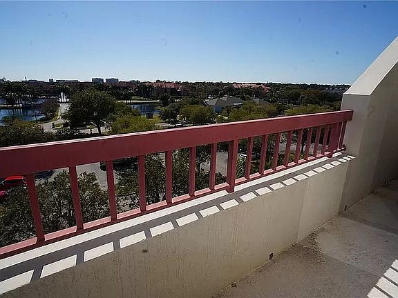 This top floor corner unit features elegant crown molding, a wrap-around exterior balcony and screened-in balcony. It includes extra windows not found in other units. Offering stunning views of the bay and golf course, this end unity has no neighbors above or to the left. The easy-to-clean tile flooring complements the newly updated shower, bathtub, toilets, vanity & baseboards, sans popcorn ceilings. Additional amenities include a washer/dryer combo, dishwasher, microwave, French door refrigerator; Internet, basic cable, trash & water. Situated in a well-kept community it boasts exclusive amenities, a sparkling swimming pool, hot tub, sauna, fitness center, cozy communal spaces, clubhouse and pool table. Its central location offers easy access to Top Golf, posh entertainment, sporting events, shopping, dining, St. Pete/Clearwater airport and beautiful Florida beaches. Ideal for both full-time living and vacationing, experience the appeal of coastal charm with urban convenience.