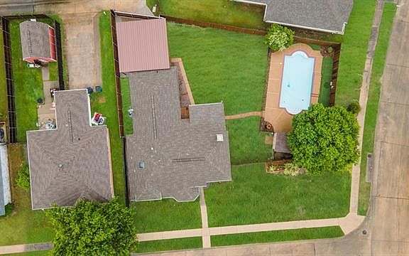Oversized corner lot only minutes away from access to hwy 75. NO HOA. Walk in this beautiful home to high ceilings and cozy fireplace for the winters. This master suite boast a walk-in closet to master bath with dual sinks, separate tub and shower. Master BR split from other BRs. New AC 2019. Kitchen great for hosting and leads to large backyard and covered patio. From back alley through your sliding privacy gate you'll find a carport for extra covered parking overlooking this spacious backyard including storage building with electric and wrought-iron gated pool to host all family gatherings.