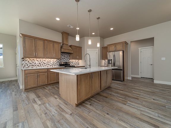NEW CONSTRUCTION by Aspen Leaf Innovations in desirable Northwest Grand Junction's country-chic living community, Silver Spur! This quality-built home features an attractive exterior facade with durable stucco and stone with rough sawn wood accents for a modern rustic vibe! Front door entry ushers you into a covered foyer that leads to the grand open dining and kitchen area. Chef's quality kitchen offers large center island with quartz countertop, upgraded cabinetry with under mount accent lighting, stainless appliances, tile backsplash and modern pendant lighting accents that create a cozy and inviting atmosphere; perfect for entertaining! Adjacent living room area boasts electric fireplace with glass rock accents for added ambiance and row of picture windows that let in abundant natural sunlight! Conveniently located half bath by living area for quick guest access! Desirable split-bedroom floor plan situates the primary bedroom in a private location on the east side of the home and features a HUMONGOUS walk-in closet and en-suite attached bath with dual vanities, cabinetry with toe-kick under mount lighting and spacious custom tile walk-in shower! 3 additional generously sized bedrooms lay on the west side of the home each have their own walk-in closets for ample storage options and share full bathroom with quartz counters, unique tile accents and tub/shower combo! Thoughtfully placed laundry/mud room with wash-sink leads out to the 3-car attached garage that offers plenty of storage space! Covered patio overlooks large backyard space that offers wonderful Grand Valley views, RV parking space and includes FULL VINYL FENCING with RV GATE INSTALLED for added value! 1-year Builder's Warranty included!