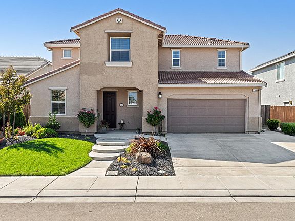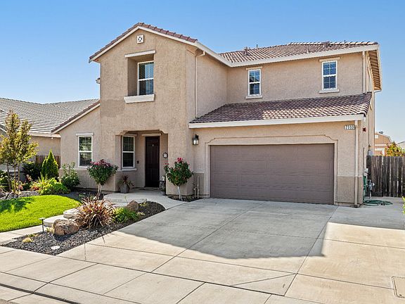 Gorgeous east-facing Meritage built home with solar, 3-car & big backyard!! 16-panel paid-for solar system, deeeeeeep backyard features a large aluminum covered patio with 4 roll-down sunscreens & 2 lighted ceiling fans, stained fencing, Tuff shed with loft & workbench, fruit trees, ground lighting, outlets on each side fence and lava rock in beds & perimeter, house has wood-look tile flooring downstairs, cabinet pulls throughout, downstairs flex room has an armoire for a 4th bedroom option & double doors for den / office as well, kitchen has slab granite counters, glass-tile backsplash, stainless appliances, double oven, island with stainless sink & breakfast bar and pantry closet, primary bedroom includes 2 sinks, tub, stall shower, walk-in closet & tile floor, other 2 bedrooms upstairs each have walk-in closets, large loft, extra storage cabinets in hallway, upstairs laundry room, finished & painted 3-car tandem garage, front has tiered concrete walk-up and porch. Come see this dynamite property!!