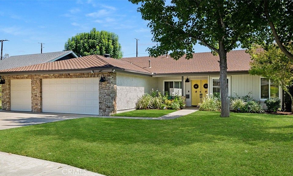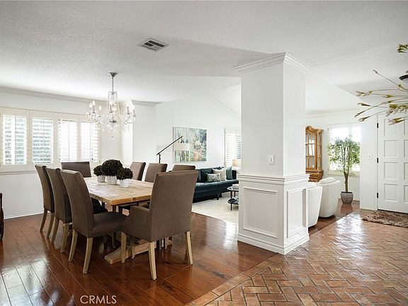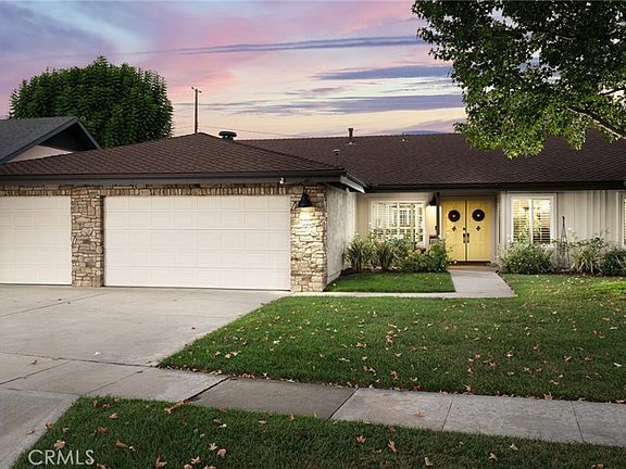 Beautifully upgraded inside and out, this stunning West Floral Park home combines modern living with timeless craftsmanship and elegant finishes. A manicured front yard and inviting porch welcome you to the double-door entry. Inside, the finished brick flooring and the Mannington dark walnut hardwood floors set the tone for the sophistication throughout. The spacious living room impresses with its cathedral ceiling with wide crown molding. The adjoining dining room, defined by a graceful ceiling change, wainscot panels and crystal chandelier, offers an intimate setting for special gatherings. Large windows and glass doors fill the home with natural light and showcase backyard and pool views from many rooms. The remodeled kitchen features crisp white cabinetry, stainless steel appliances, crown molding, and luxurious Coliseum granite counters with a casual eat-in bar. The breakfast nook, complete with its own chandelier, opens to the family room and freshly rebuilt covered patio, perfect for outdoor dining and poolside entertaining! The family room centers around a marble fireplace with carved wood mantle and a wall of custom built-in cabinetry, creating a warm and inviting space to gather. 4 bedrooms and 2 upgraded bathrooms, including a serene primary suite with cathedral ceiling, ample closet space, view of the sparkling pool, and private bath with dual sinks, stone counters, and a step-in shower. The front bedroom, currently used as an office, has a built-in with granite countertop. A wide hallway includes built-in cabinetry with granite counters and glass display doors for added storage and style. Quality upgrades include newer Anlin windows and glass doors, upgraded interior doors, a new tankless water heater, and plantation shutters. The oversized three-car garage offers abundant storage and a rare custom pass-through door to the backyard. Outdoors, the sparkling pool and spa are surrounded by brick accents, lush lawn, and vine-covered walls, offering both beauty and privacy. The expansive covered patio is ideal for relaxing or entertaining in true California style. Located in the highly desirable West Floral Park neighborhood, known for its friendly atmosphere, mid-century and ranch-style homes, and community events such as Open Garden Day and holiday celebrations. Centrally located near the 5, 22, and 57 freeways, only minutes to Orange County School of the Arts, Downtown Santa Ana, and Old Towne Orange—this exceptional home is not to be missed!