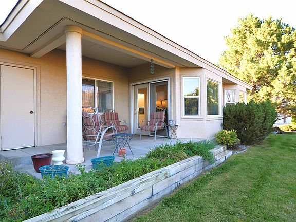 Ready to live in the gorgeous South Rim subdivision? Ranch style 4 bedroom, 2 bathroom, oversized 2 car garage home is waiting for you to make it your own. Home has higher ceilings throughout. Welcoming living room with dry stack stone gas log fireplace. Pass through galley Kitchen has skylight and hallway pantry. Separate formal dining room with access to back covered patio. Large master bedroom with two walk-in closets and 3/4 bathroom. Two guestrooms are also nicely sized and close to a full guest bathroom. Large laundry room with coat closet, double door linen closet, and room for additional refrigerator or freezer. 4th bedroom is close to the front door and currently being used as an office. Oversized two car garage with tons of storage and utility sink!