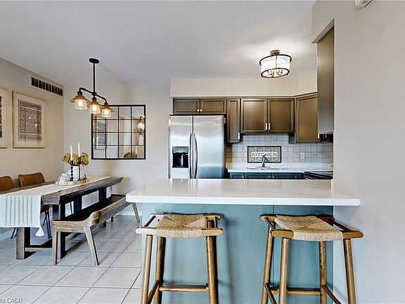 Bright Corner-Unit with Ravine Views in Prime Burlington Location! Airy, and full of charm - this spacious corner-unit stacked townhouse overlooks a serene ravine in a quiet, family-friendly neighbourhood. Perfectly positioned near Walkers Line & Dundas, this home receives beautiful morning sunlight, with a cozy open terrace where you can sip your coffee and soak it all in.The open-concept living space features a fireplace for added warmth and ambiance, creating a welcoming atmosphere for relaxing or entertaining. The primary bedroom includes its own 4-piece ensuite, while the second full bathroom adds convenience for guests or family. The versatile layout includes a den, ideal for a home office, nursery, or reading nook.This lovingly cared-for home offers thoughtful upgrades: New front door (2024), Quartz kitchen countertop (2023), IKEA PAX wall-mounted wardrobe (2023), Window blinds in both bedrooms (2022), Popcorn ceiling removed (2021), Pot lights & upgraded lighting in kitchen/dining (2021), New Washer-Dryer (2025), Dishwasher (2025) and Updated kitchen cabinet colour & handles (2021). Deeded owned parking ($62.17), with additional parking available. Low condo fees include well-maintained common elements, enhancing the appeal and value of this property.A fantastic opportunity for first-time buyers, young professionals, down-sizers, or investors. All pictures on the listing are from September 2024.