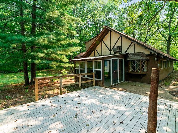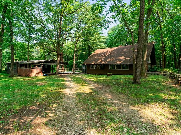 This is the restoration project you've been waiting for! This A-frame estate sale was lovingly built and owned by one owner. Even though it has fallen into disrepair, you can tell it has really good bones. This 1.2 acre, heavily wooded property is only 10-15 minutes from every amenity that Minooka, Channahon and Shorewood have to offer. It is also so far off of the beaten path that most local residents do not even know this street exists! The large living, dining area, with hand sculpted chandelier and brick fireplace is the perfect place to host all of your friends and family year round. Due to it's current condition, cash or rehab loan offers only please. 6 car tandem carport, deck, fire pit, screened patio, A-frame shed.