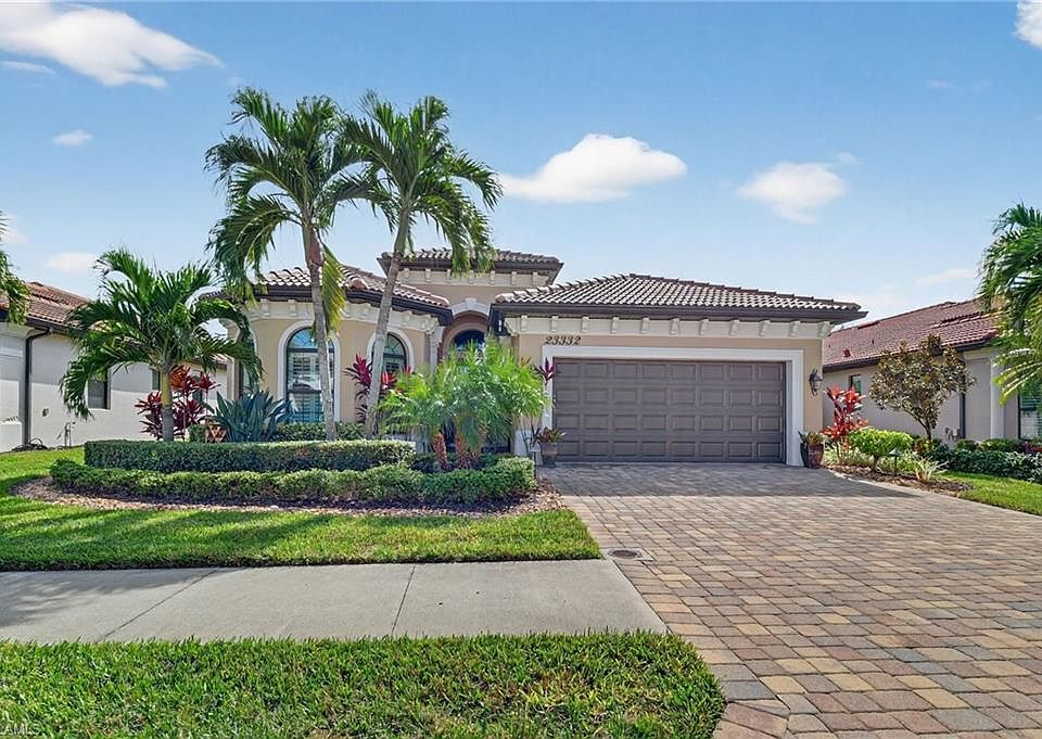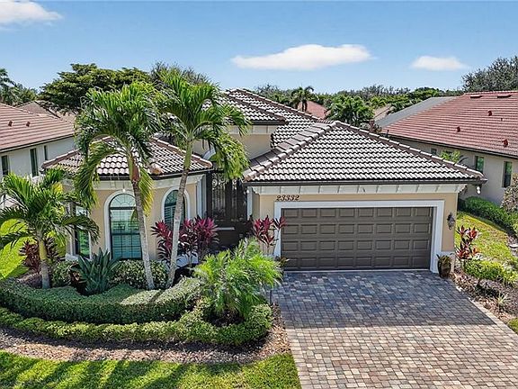 Nestled within the picturesque Bonita Lakes community, developed by Toll Brothers, 23332 Sanabria Loop presents a rare opportunity to enjoy luxurious Florida living. This impeccably maintained home seamlessly blends comfort, style, and modern amenities, making it an ideal choice for those seeking an elevated lifestyle in Southwest Florida. The residence features three generous bedrooms, two and a half bathrooms, and a versatile den suitable for a home office or additional living space. Recently, the exterior of the home was repainted, and new crown molding was installed and painted, further enhancing the elegant atmosphere throughout. In 2024, a new HVAC unit was added to ensure year-round comfort for residents. Additional upgrades include new can lights installed throughout the interior, creating a bright and inviting ambiance, as well as a new front door designed to maximize the flow of natural light into the home. A whole-house reverse osmosis system has been added, providing high-quality water to every faucet and fixture within the residence, ensuring both convenience and peace of mind. Step outside to experience the best of Florida living. The custom pool area is enhanced with new uplighting and a state-of-the-art filtration system, new pool heater, creating a relaxing and beautiful environment. Surrounding the pool are several newly planted palm trees and upgraded landscaping, further elevating the outdoor setting. The pool itself features a hot tub and a newly installed handle for easy access. For those who love to entertain, the outdoor space boasts a newly built grill and refrigerator, perfect for hosting gatherings and enjoying meals outdoors. This home is equipped with hurricane-proof impact windows and doors, providing enhanced security and peace of mind. The pool area is further protected by newly installed Storm Smart electronic screens, offering additional safety and protection during severe weather conditions.