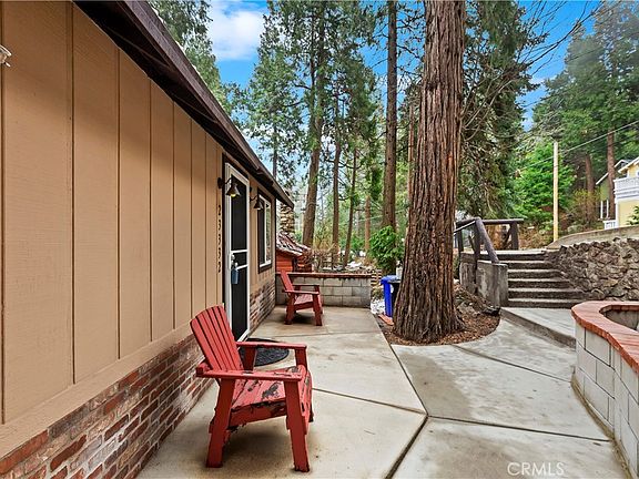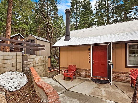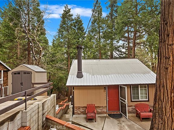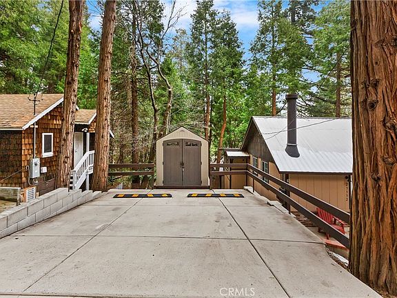Don't miss this completely remodeled 2 bedroom, 2 bath cabin just off Hwy 138! It has been tastefully upgraded and shows great pride of ownership! The kitchen includes Corian counters, tile backsplash, black appliances (microwave & free-standing gas stove), and stainless steel sink. The living room offers a cozy rock fireplace and a separate gas heater. The dining room has wood flooring, a ceiling fan, and direct access to the balcony and to the downstairs living area. In the master bedroom there is a ceiling fan and a Jack-n-Jill bathroom (to the living room). Relax on the spacious balcony with a good book, cup of coffee (hot chocolate, etc.) or entertain family & friends while you enjoy the peaceful surroundings and beautiful view of the trees! The downstairs bedroom and bath were added in 2014. This spacious bedroom includes plenty of storage space, a closet with mirrored wardrobe doors, and work-out area with direct access to the back patio. The adjacent bathroom has attractive tilework, a walk-in shower, laundry area in the closet (doors are in the workshop). Other features include new dual pane vinyl windows (all except the front), tile flooring in kitchen, bathrooms and downstairs, new carpeting, attractive wood ceilings in the dining area, master bedroom and workout area (downstairs), a quaint front porch, a covered back patio, 2-car carport with 2 sheds (one at carport level, one below), plus 10 x 12 workshop shed, a back yard with plenty of room for a garden and/or play area, an aluminum roof, and much more! This home is located near local shops, restaurants and entertainment, and is just minutes from Lake Gregory. Come by and take a look, you'll be glad you did!