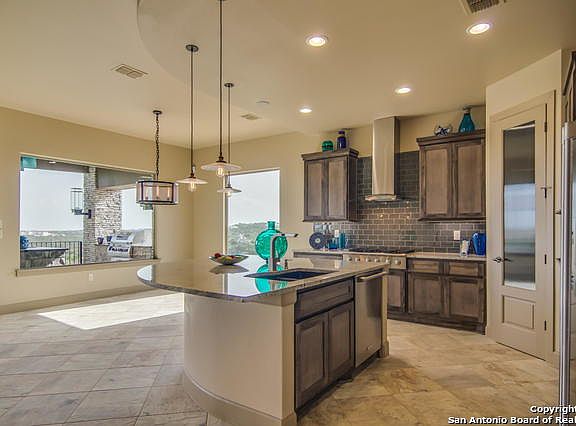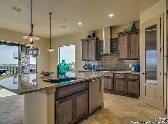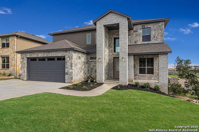 Exceptionally designed Modern Custom Home by award winning builder. Magnificent views to the Tower of Americas! Come see for yourself the incredible Living Space blending Indoor and Outdoor entertaining. Outdoor Living area w/ built in Gas Grill, large granite Island Bar w/ Sink, Gas Fire Pit and gorgeous dry stack Stone Columns Wide open Views across Stone Oak Park. Huge Game Room incl Wet Bar. Wired for Media. Built Green w/ 3 zone 16 Seer HVAC for comfort & efficiency. Exceptional finishes throughout