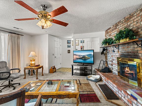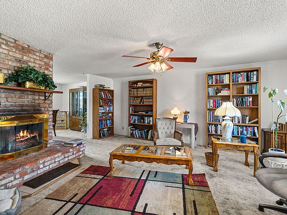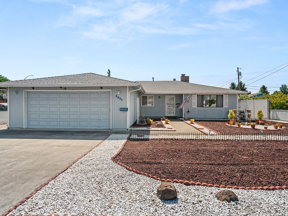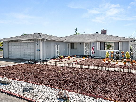 Dual RV parking, 3 spacious bedrooms, 2 full bathrooms and nearly 1500 sq ft of living space. The living room is spacious featuring a floor to ceiling brick fireplace, and the dining room offers views of the impressive backyard. The kitchen is filled with plenty of storage, gas range and a door to enjoy the covered patio. Low maintenance front yard. The backyard features a covered patio, walking path, mature shrubs, greenhouse and storage shed. Walking distance to a neighborhood park.