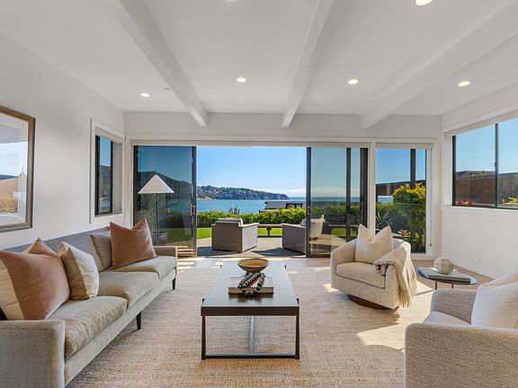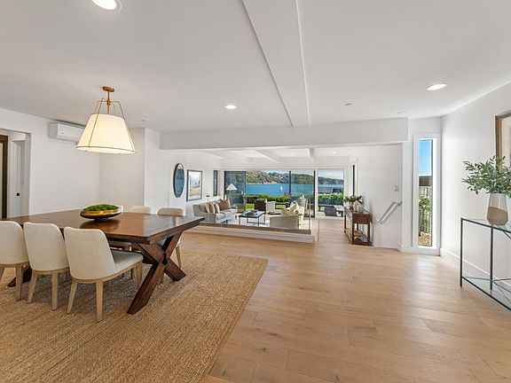 Situated in the heart of Old Town Tiburon, this rare updated condo showcases sweeping views of Angel Island, the Bay, San Francisco, and the Golden Gate Bridge. Truly a vacation at home only minutes to the waterfront and downtown Tiburon. A haven for entertainers, featuring a sunny backyard with a turf lawn, a deck, a patio with built-in seating, a fire pit, manicured landscaping, and vibrant hydrangea and rose gardens. Beautiful hardwood floors throughout the main living spaces. The light-filled great room is the heart of the residence, featuring a fireplace, oversized windows, breathtaking views, and sliding glass doors opening to the outdoor living spaces. Indulge in elevated functionality and style in the remodeled chef's kitchen, featuring a large center island with counter seating, modern pendant lighting, custom cabinetry, and high-end stainless steel appliances. The comfortable primary suite features carpeting, recessed lighting, captivating views, a stylish and updated bathroom, and sliding glass doors opening to a sunny deck. Spacious guest bedroom with access to the outdoors. Adjacent to the dining room is an office with a view of Raccoon Strait, hardwood floors, and sliding barn doors. Single level living with only a few steps to the entrance. Two car garage.