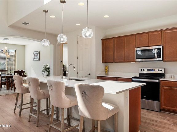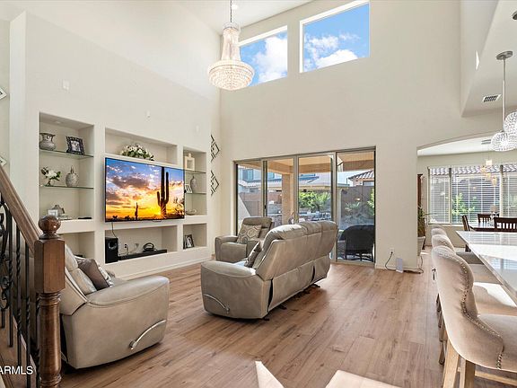 Why Wait for New? This Stunning 5-Bedroom Has It All—Move-In Ready! Step into luxury with this 5 bedroom, 4.5 bath home that feels practically brand new. From the moment you enter, you'll be greeted by gleaming hardwood floors, a dramatic iron staircase, and a sparkling crystal chandelier that sets the tone. The heart of the home is the chef's kitchen, featuring a huge quartz island, abundant cabinetry, walk-in pantry, and seamless flow into the great room—perfect for entertaining. Enjoy dinners in the formal dining room, then step outside to your covered BBQ space and extended patio for year-round living.The primary suite is conveniently located on the first floor with a spa-like bath: double sinks, separate shower, and more. A second ensuite bedroom with walk-in shower is also downstairs, ideal for guests or multigenerational living. Upstairs, discover a bonus loft area plus an additional ensuite bedroom with private baths.Other highlights include a private office/den, powder bath, and a spacious 2-car garage. With every upgrade already in place, this home delivers the beauty, functionality, and comfort you're dreaming ofwithout the wait.