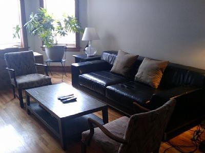 Beautiful greystone with large rooms. 2 bedrooms plus an office, gutted kitchen, lots of closets, all natural wood, separate dining room, big backyard for barbecuing, granite counters in the kitchen and bath.