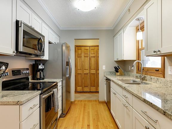Super cute rambler is move-in ready. Updated kitchen incl SS appl, granite counters and new DR hutch (2015). Updated main bath (2012). Hardwood floors in BRs. 6-panel solid doors on main level. Lrg living room with tons of natural light. Triple pane glass door opens to deck and large, flat fully fenced backyard. LL has huge open space. Two rooms can be converted to BR and sitting room/office by adding an egress window. Close to parks and Gateway Tr. Easy access to freeways. 1-yr home warranty.