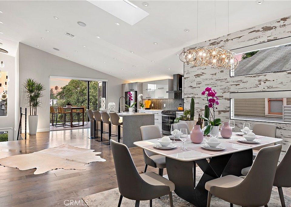 Perfectly sited on a tiered lot with East facing views, this 3-bedroom 3 bath home was taken down to one wall and completely rebuilt into a work of art in perfect harmony with today’s indoor/outdoor lifestyle. Multiple suspended patios bring the outside in at the master bedroom as well as off the kitchen, affording al fresco dining with views of the twinkling lights of the rolling hills & DTLA. This multi-tiered lot provides numerous areas to gather.