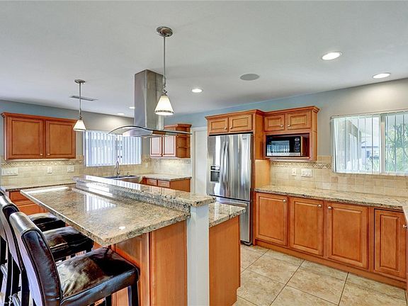 Highly upgraded and remodeled single family house on huge corner lot. Featuring RV driveway ideal for jet skis or other small vehicle, motor or water craft. Gigantic front and rear yards perfect for family fun and entertaining. Back yard has covered patio and mature well kept landscaping. Remodeled kitchen with dual sided cabinetry and self closing drawers. Kitchen and bathrooms have granite counter tops and tons of cabinetry. New Double Kitchen sink & faucet. Newer Maytag Dishwaser. Beautiful and tasteful ceramic tile in foyer, kitchen, living room and hallway. Travertine tile in bathrooms and newer carpeting thru out. Scraped and textured ceilings with recessed lighting and ceiling fans. Newer windows, raised panel doors, mirrored closets and garage door. Upgraded electrical panel box with 220 voltage. Stacked stone fireplace with custom mantel sets the mood for those special evenings. New 50 gallon Water heater & newer Air Conditioner & Forced Air Unit. Auto Sprinkler systems in front and back yards and peach tree in back. Surround sound speakers. 2 Outside Surveillance Camera. Close walking distance to many stores, restaurants & public transportation.