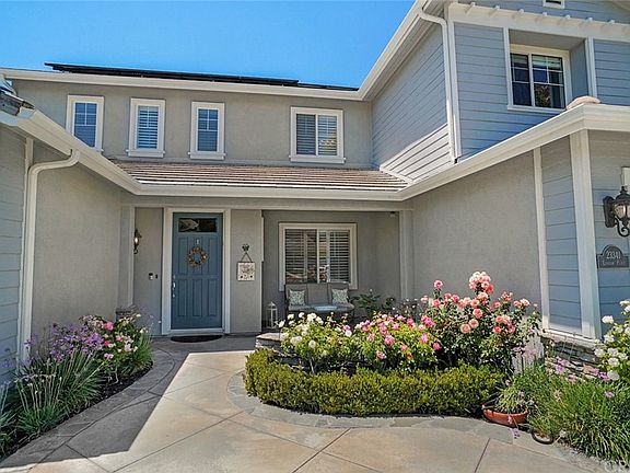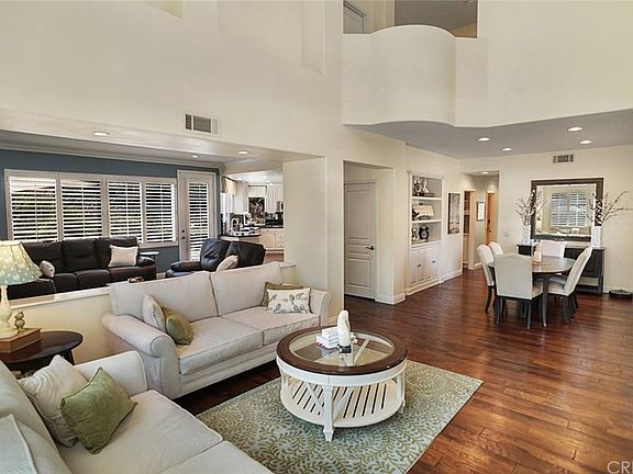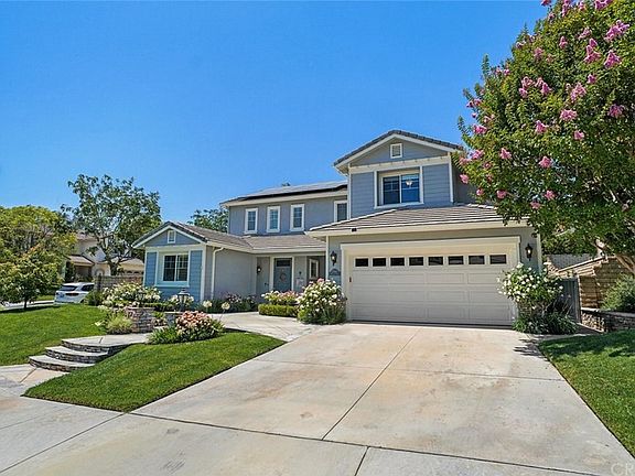 Gorgeous & Immaculate Valencia Smart Home with 4 Bedrooms plus Executive Office in a cul-de-sac in Prestigious Northbridge Point. PRE-PAID Leased Solar until 2033! This updated home welcomes you with high-end beautiful hardwood floors, plantation shutters, recessed lights, & crown molding. Wonderful open floor plan includes a cozy fireplace & built-in media cabinet. Stylish white cabinets in the gourmet chef's kitchen w/granite counters & island, stainless-steel KitchenAid/GE Profile appliances including double ovens along with a butler's pantry, walk-in pantry, built-in desk w/overhead storage & wine rack. Built-in hutch in dining area that opens to living area. 1 bedroom & bath downstairs. Upstairs is a spacious master suite & stunning remodeled master bath w/marble counters 2 additional bedrooms w/walk-in closets. Lots of linen & storage closets, convenient laundry chute, & dual built-in desks. Hall bathroom remodeled w/marble counters & dual sinks. Backyard features large patio area w/waterfall, elegant lighting, grassy area, & planter boxes for your garden! Additionally, this freshly painted exterior home includes a tankless water heater, 2-air conditioners w/Nests, ceiling fans, Ring security alarm system & cameras, Bose audio surround sound, EV wiring, & custom built-in cabinets in garage. See supplement for Smart Technology features, too many to list here! Short walk to community pools/spas, clubhouse, & playground. Award-winning schools! Low HOA & No Mello-Roos!