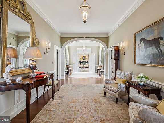 ROSE HILL ESTATE-350 ACRES OF HISTORIC ELEGANCE AND ELEVATED COUNTRY LIFESTYLE. One of Virginia’s most distinguished country estates, this extraordinary 352-acre property offers timeless elegance, masterful restoration, and unparalleled privacy. Designed for those who seek both heritage and luxury, every detail of this estate reflects refined craftsmanship and enduring beauty. Set amid 352.24 acres of pristine Virginia countryside under conservation easement ensuring enduring privacy, this extraordinary estate blends centuries-old heritage with elegant lifestyle, the highest level of modern restoration and design. Accessed through two gated entrances, the property unfolds across rolling fields, century old grand hardwoods (perfect for swinging), formal gardens, and a stocked pond, offering an unmatched combination of seclusion, grandeur, and comfort. Originally built in 1799, the residence underwent complete restoration in 2011 by Tidewater Preservation, Inc., guided by acclaimed Charleston interior designer Amelia T. Handegan as seen in Architectural Digest. The result is an estate that honors its historic character while incorporating highest refined elegance and advanced systems, including geothermal climate control and radiant floor heating. The 5,431 sq ft main house features 4 bedrooms, each with an ensuite bath, and gracious living spaces adorned with hardwood floors, intricate crown molding, chair railing, and custom French wallpaper. Formal entertaining rooms include a dining room with fireplace, living room with built-ins, and a distinctive octagonal music room with English windows and hand-painted geometric floors. The chefs eat-in kitchen pairs historic beauty with professional-grade amenities: wood cabinetry, stunning wood burning fireplace, marble-topped island, Wolf range, paneled appliances, wine refrigerator, and ice machine. A beautiful mudroom with built-ins and front-loading washer/dryer with access to the gorgeous garden complements the space. The stunning main level primary suite boasts front porch access, fireplace, sitting room with built-ins, walk-in closet, doors accessing the outdoors, and a marble-clad bathroom with dual sinks, soaking tub, and walk-in shower. The Additional suites provide fireplaces, built-ins, walk-in closet, and beautifully appointed baths. All with majestic views of either rolling hills and pond or stunning historic garden. Beyond the main house, a beautiful guest cottage with exposed beams, marble finishes, and fireplace offers a private retreat. A Pennsylvania bank barn (relocated in 2009) houses a gym, office with full bath, and loft. Distinctive architectural features include a Thomas Jefferson-designed dovecote with Birmingham Rollers and a new folly overlooking the stocked pond. Outdoor amenities include a tennis court with pavilion, croquet lawn, riding trails, formal gardens featured in and used for Garden Club tours highlighting the home and its Historic Garden filled with hydrangeas, peonies, fruit trees, rose of Sharon and much more. A working barn housing a herd of Belted Galloway cattle and a stocked pond with new folly complete the estate. Utilities: well water, septic, geothermal A/C, propane heat (two owned tanks: 500 & 1,000 gallons), radiant floor heating, and four hot water tanks. This estate is a rare offering—steeped in history, exquisitely restored, and a wonderful lifestyle with opportunity in nature and outdoor activities.