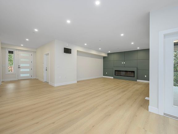 Custom feature wallFireplace in living rmOpen concept planQuartz countersShaker style cabinets
