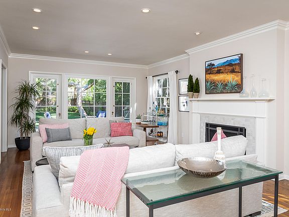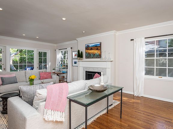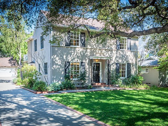 This Colonial style residence is impressively seated in the Brigden Ranch neighborhood of Pasadena. The living room is flooded with sunlight and features a gas fireplace with custom wood moulding and a hearth of hand selected tiles. This room offers open views of both, the lush landscaped rear yard and the entertaining patio through the French doors. The kitchen has been tastefully updated with Calcutta marble, custom Clé tile backsplash, Thermador stainless steel appliances and a large eat-in kitchen area. The first level also has a formal dining room with outlooks to the elegant gardens, a California basement and an updated bathroom off the kitchen complete the first floor. The staircase to the upper level leads you to the carefully curated three bedrooms each with their own unique offerings. The graciously sized master bedroom enjoys, both north and south facing treetop views. The second bedroom has tranquil paint colors and boasts several perfectly framed window outlooks. The third bedroom has a private balcony with stunning views of the San Gabriel mountains. The updated bathroom in the hallway has a double vanity with Carrera marble and a freestanding shower. The detached two car garage make this the perfect home for today's modern lifestyle.