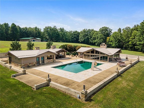 Experience unparalleled luxury and privacy at this exquisite 50-acre estate, a sanctuary designed for the ultimate in comfort and seclusion. The main camp home features 4 bedrooms and 5 baths, with heated floors throughout, a chef’s kitchen, and an integrated sound system on the main level. The impressive pool area, complete with a fireplace, grill and additional wet bar. The adjoining pool house is fully equipped with a chef’s kitchen, roll-up serving bar, his and her bathrooms. For hunting enthusiasts, a nearly finished cabin offers 1 bedroom, 1 bathroom, a loft area, and is plumbed for a small kitchen, with a lookout on the third level for panoramic views. The charming pond pavilion includes a fire pit and storage room, perfect for tranquil outdoor gatherings. A large shop on the property caters to all your equipment and storage needs, complete with a bathroom. Conveniently located just 3 minutes from Cook Forest State Park, and 10 minutes to the Clarion River.