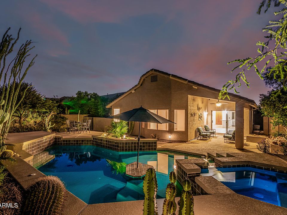 Beautifully remodeled home in the gated Boulder Mountain community, surrounded by scenic trails and mountains. Features include a brand-new roof (2024), fresh paint, hybrid plank flooring, new baseboards, shaker cabinets with quartz countertops, and fully updated bathrooms. The open layout leads to a private backyard with a custom heated pool and spa featuring swim-in-place jets, water features, gas fire pit, citrus trees, and dog run. Mountain views, resort-style living, and no HOA rental restrictions make this an ideal full-time home, getaway, or short-term rental!