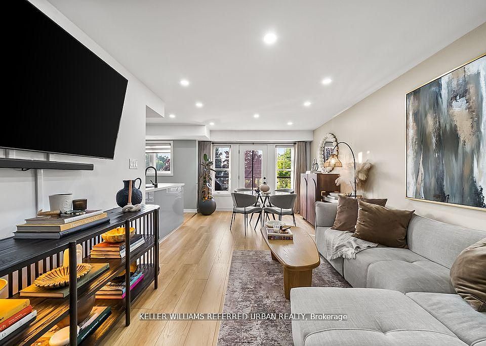 Modern 2-Storey Townhome Condo | The Brownstones at Westown | Turn-Key & Stylish | 1,016 Sq Ft Bright, Modern and tastefully fully upgraded 2-bedroom, 2-bath residence featuring a kitchen with quartz counters, designer stainless-steel appliances, and a breakfast bar overlooking a spacious open-concept living and dining area with walk-out to a private terrace, perfect for gatherings. Includes parking and locker. Low maintenance fees (~$345/mo.) cover common elements, snow removal, and landscaping. Enjoy over 1,000 sq ft of space and privacy, exceptional value compared to downtown condos. Pet-friendly community with low fees, excellent transit access, and proximity to York University, Humber College, major highways, parks, and shopping. Ideal for first-time buyers or investors seeking strong rental demand in a newer, well-managed complex.