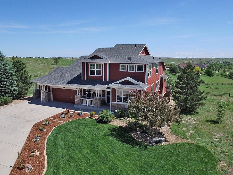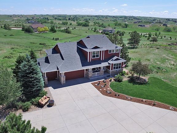 Welcome to close-in country living at its finest! Douglas County Schools*Beautiful western dowel fenced acreage with panoramic views*Paved roads*Concrete drive*Great landscaping shows absolutely perfect*Gourmet kitchen with slab granite, double ovens, lots of cabinet space and eat-in space*Main floor master with sitting area and 5 piece bath*Finished walk-out basement with large family room*New carpet*High efficiency furnace with super low energy bills*Big trex deck*Hot tub*You will not be disappointed!